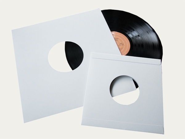 Archivní obaly ve tvaru U – na vinylové a šelakové desky, vyrobené z archivního kartonu 047 šedomodré barvy, 330 g/m², cca. tloušťka 0,35 mm.