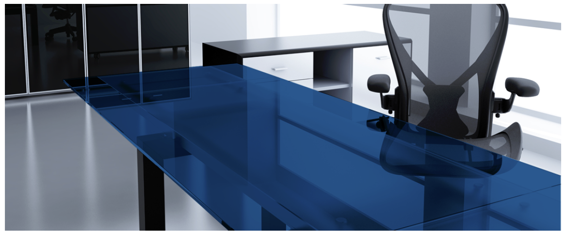Polyesterová interiérová okenní fólie v odstínu modré barvy, určená k lepení na sklo.