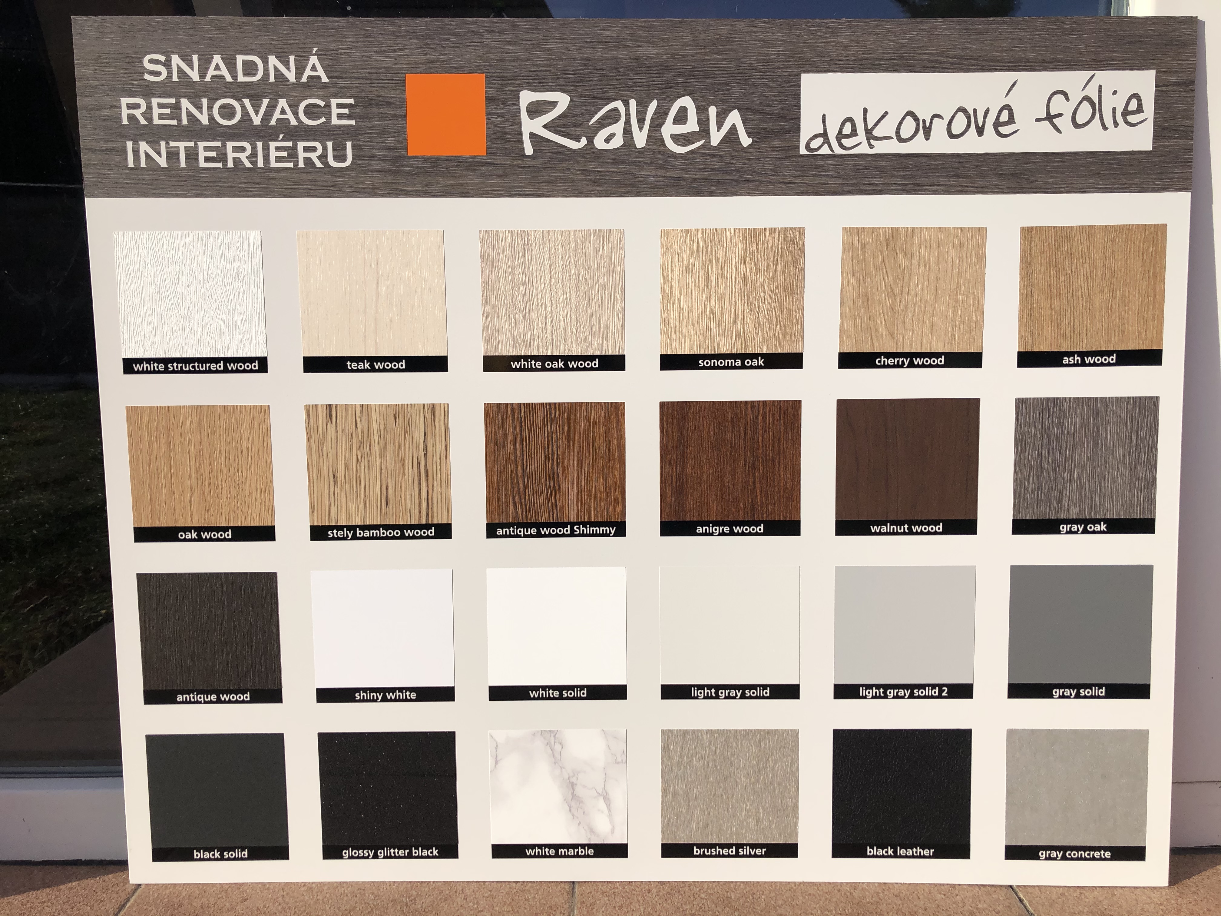 Výstavní stojan dekorových fólií Raven - skladových zásob.