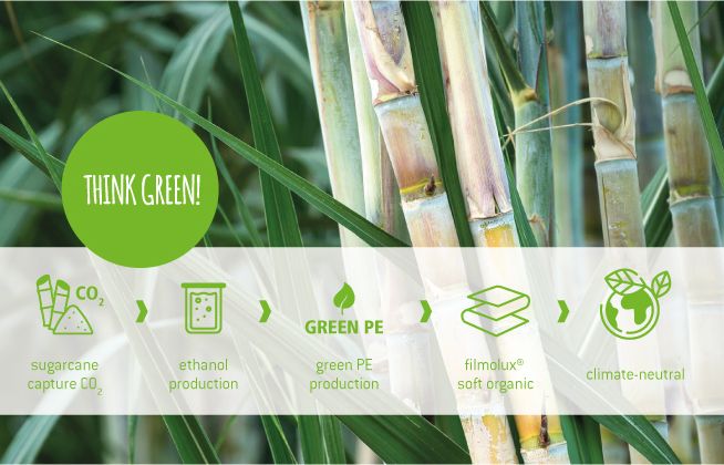 Když je zcela vzrostlá, tak se cukrová třtina sklízí a odváží se do mlýnů k dalšímu zpracování. Šťáva z prvního lisování se většinou používá k výrobě cukru. Následující lisování extrahuje zbytkový cukr za vzniku ethanolu. Ethanol se používá jako biopalivo nebo jako hlavní složka plastů na bázi bio (greenTM plast). Zbývající odpadní vlákna (nazývaná bagasa) se používají k pohonu mlýna, využívající teplo páry pro výrobu elektřiny. Tento proces způsobuje, že cukrová třtina je velmi vynalézavá. Popel, spolu se zbytky odpadu, zvaný vinasse, může být znovu použit jako hnojivo. Vinasse je bohatý na organické živiny a vodu. Toto organické hnojení na polích cukrové třtiny snižuje potřebu chemických hnojiv a přispívá tak ke snižování emisí skleníkových plynů. Bioethanol se dehydratuje za vzniku ethylenu, který se potom polymerizuje jako plastová pryskyřice. Jedná se o plast, který se používá k výrobě ochranných fólií na knihy Filmolux Soft Organic.