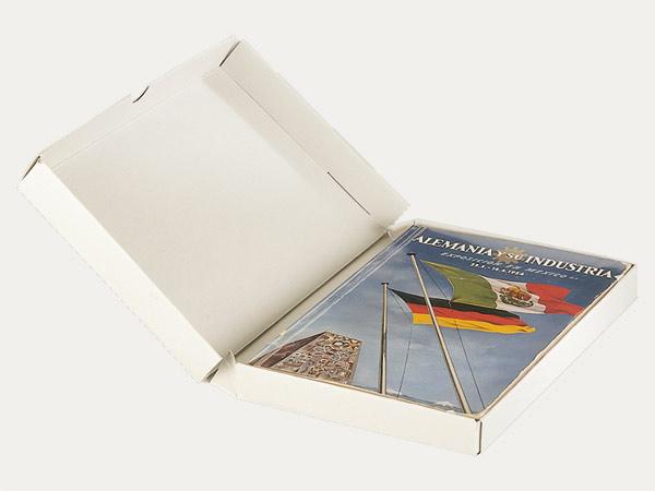 Pevně uzavíratelná propracovaná krabice se sklopným víkem zvláště navržená pro skladování knih a nevázaných materiálů. Plně sklopná konstrukce se zcela hladkým vnitřním i vnějším povrchem. Vyrobeno z lepenkových materiálů s hmotností v rozmezí přibližně 330 až 900 g/m2.