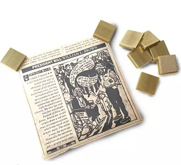 Mosazná těžítka na papír pro bezpečné uchycení papírů, textilií a dalších předmětů. Čtvercová závaží o rozměrech 25 mm a tloušťce 5 mm jsou válena do hladkého povrchu bez ostrých hran. Základny jsou polstrovány polyethylenovou plstí pro extra ochranu proti zachycení a oděru.