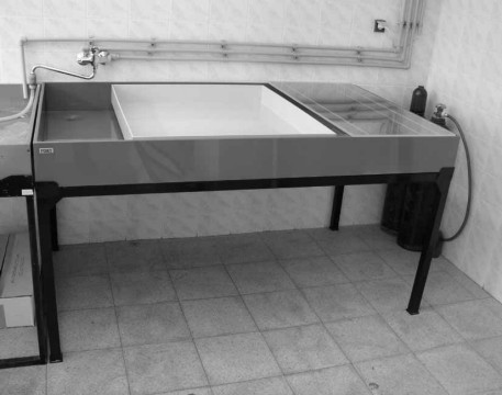 Plastová vana velká - vyrobená z PVC v barvě dle dohody. V levém zadním rohu je uzpůsobena pro osazení dřezové výpusti a napojení na odpadní sifon, rozměr 1700 x 1000 x 160 mm.