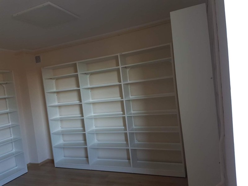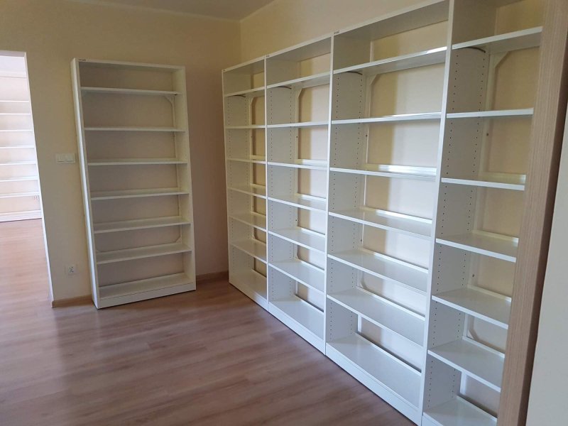Instalace knihovních regálů STEELA v Obecní veřejné knihovně v Rudzienicích, Polsko.