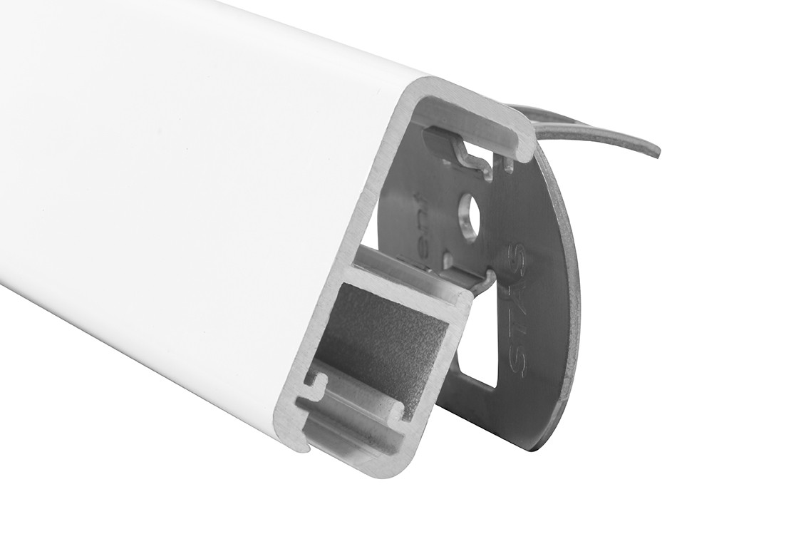Zacvakněte kolejnici na klipy a zkombinujte závěsný systém obrazu se šňůrami STAS. Tento push, click & go systém lze použít na všechny typy sádrokartonu (plochý kámen, sádrokarton, sádrokarton, pórobetonové tvárnice atd.). STAS drywallXpress: nejjednodušší systém pro zavěšení obrazu na světě!.