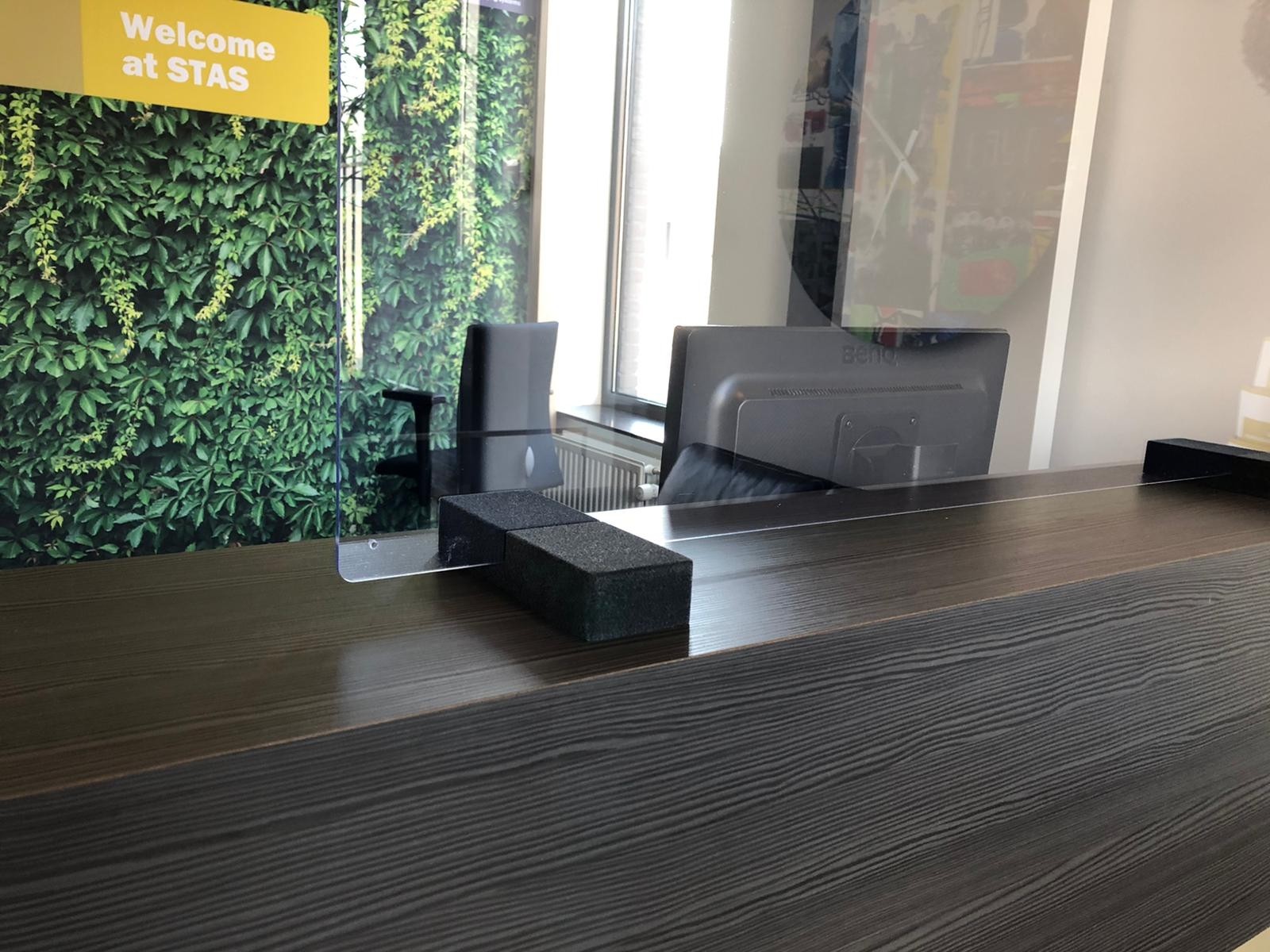 Obrazovka plexiskla STAS je vyrobena z vysoce kvalitního plexiskla tl. 5 mm s nejvyšší průhledností pro co nejmenší rozmazané vidění. Ideální pro kancelář, stůl, pokladnu, recepci nebo pult. Obrazovka má na obou stranách ochranný film a lze jej snadno umístit do objednávaných podstavců. Výsledkem je profesionální oddělení mezi zaměstnanci a zákazníky / návštěvníky s průhlednou obrazovkou, která je pevná a stabilní. Obrazovku lze také naklonit o čtvrt otáčky, takže se její šířka a výška obrátí.