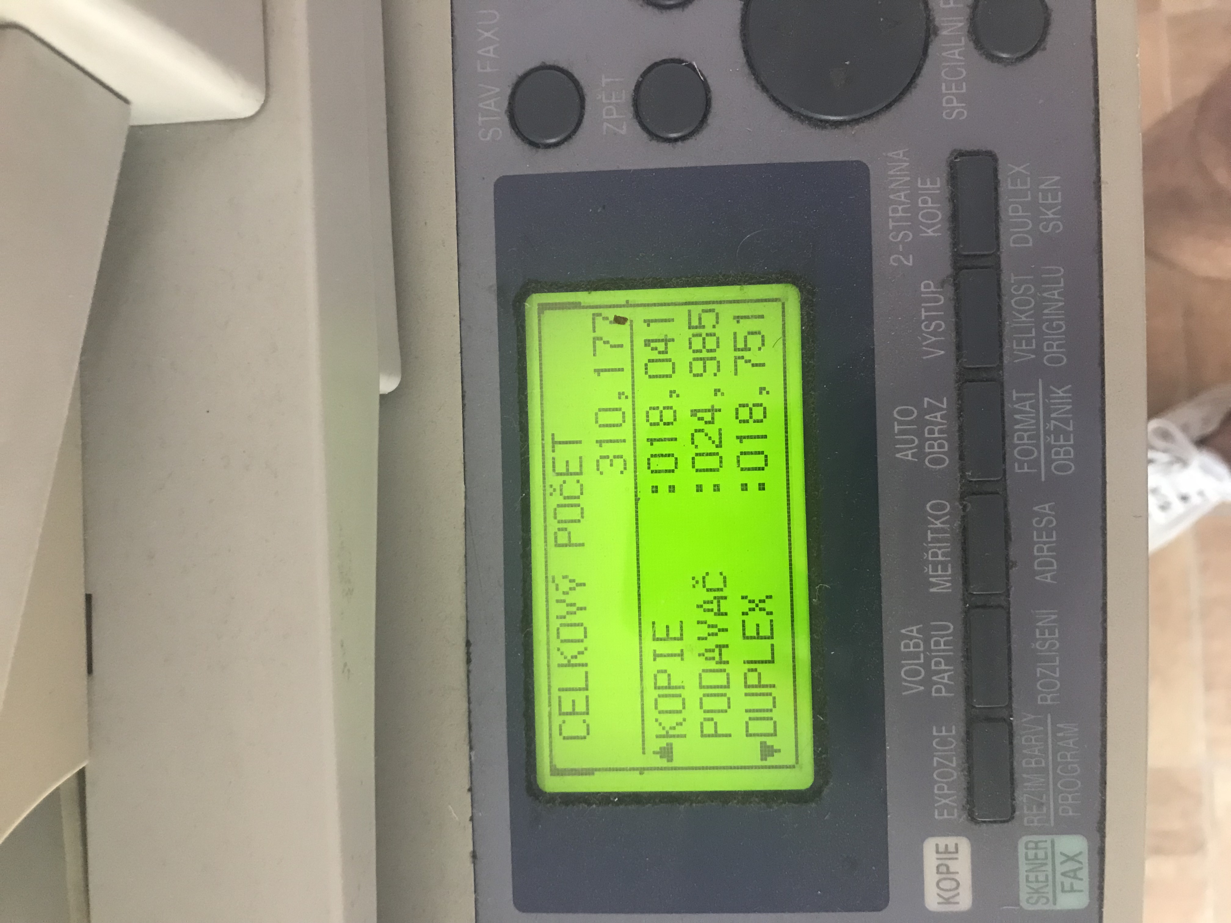 Natisknuto celkem 310 777, Pravidelně servisováno, Začínající problém s duplexem zasekávání stránek při větším počtu tisků. Potřeba tiskárnu vyčistit případně postoupit dalšímu servisu pokud by problém přetrvával.