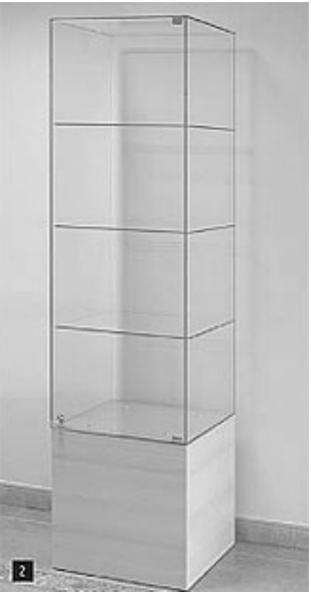 Vitrína je yrobená lepením z čirého skla o síle 6 mm, dvířka o síle 5 mm.