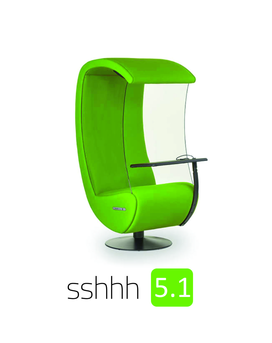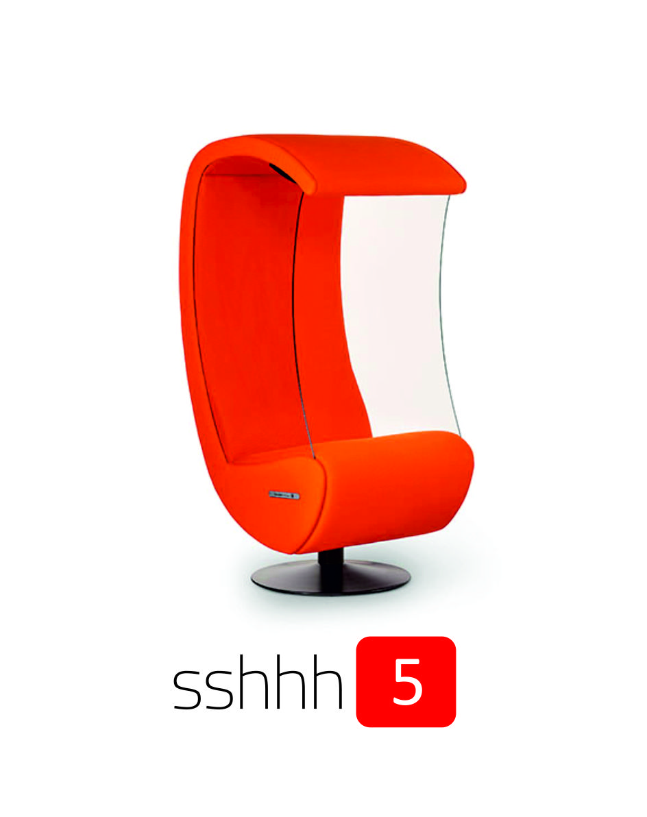 sshhh 5 - akustické křeslo bez audio vybavení, absorbuje a tlumí hluk okolí, vytváří tichý prostor pro vaši práci, četbu a relaxaci