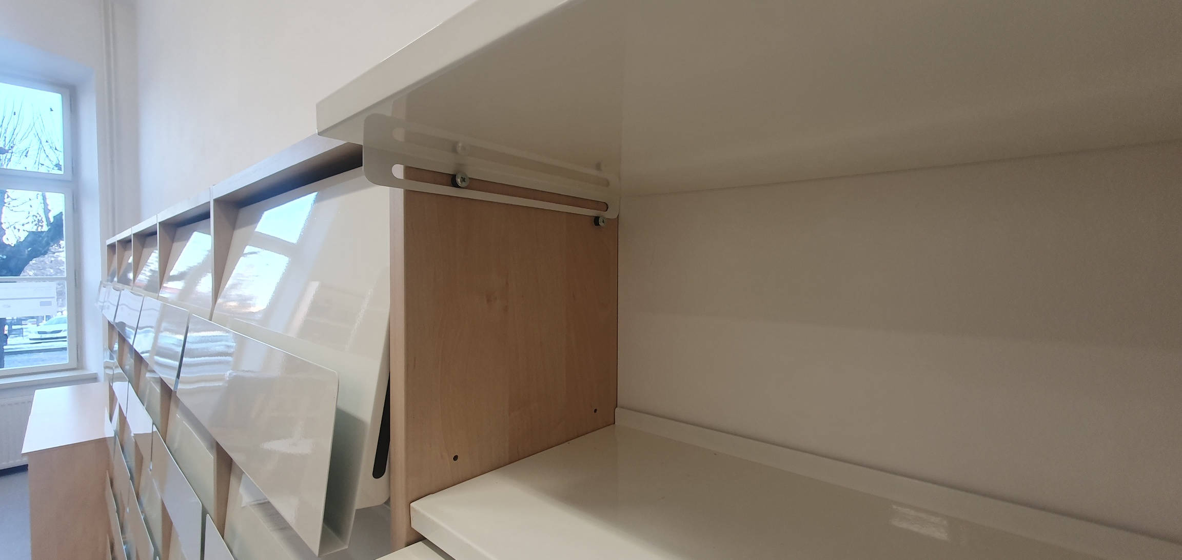 Dvířka s kapsou pro časopisy lze vyjmout a využít jen standardní polici v regálu.