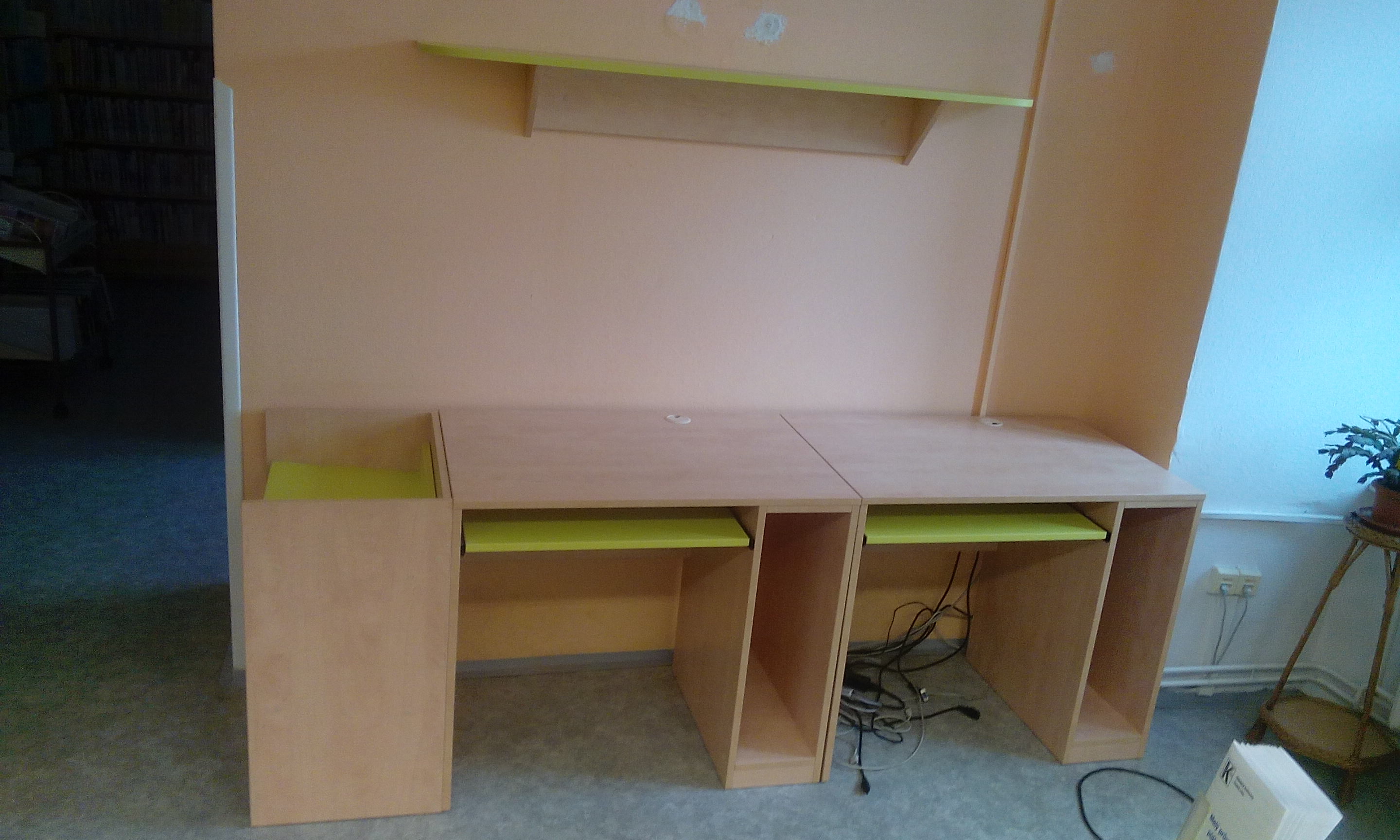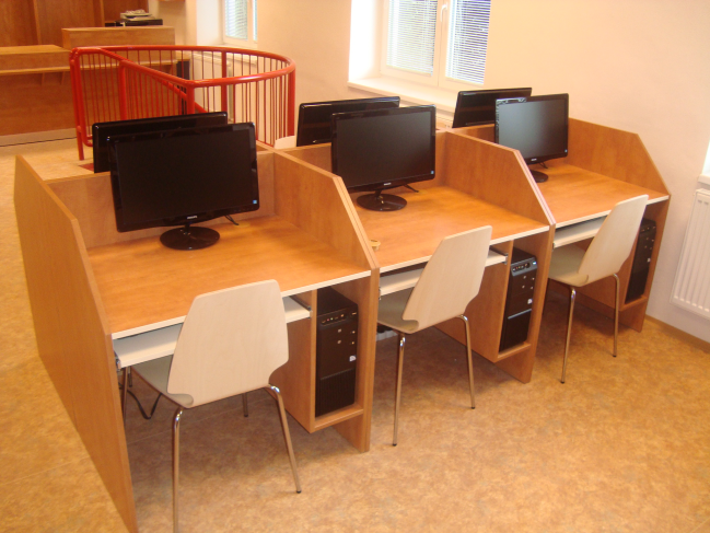 výsuv klávesnice, box na PC, průchodky na kabely,