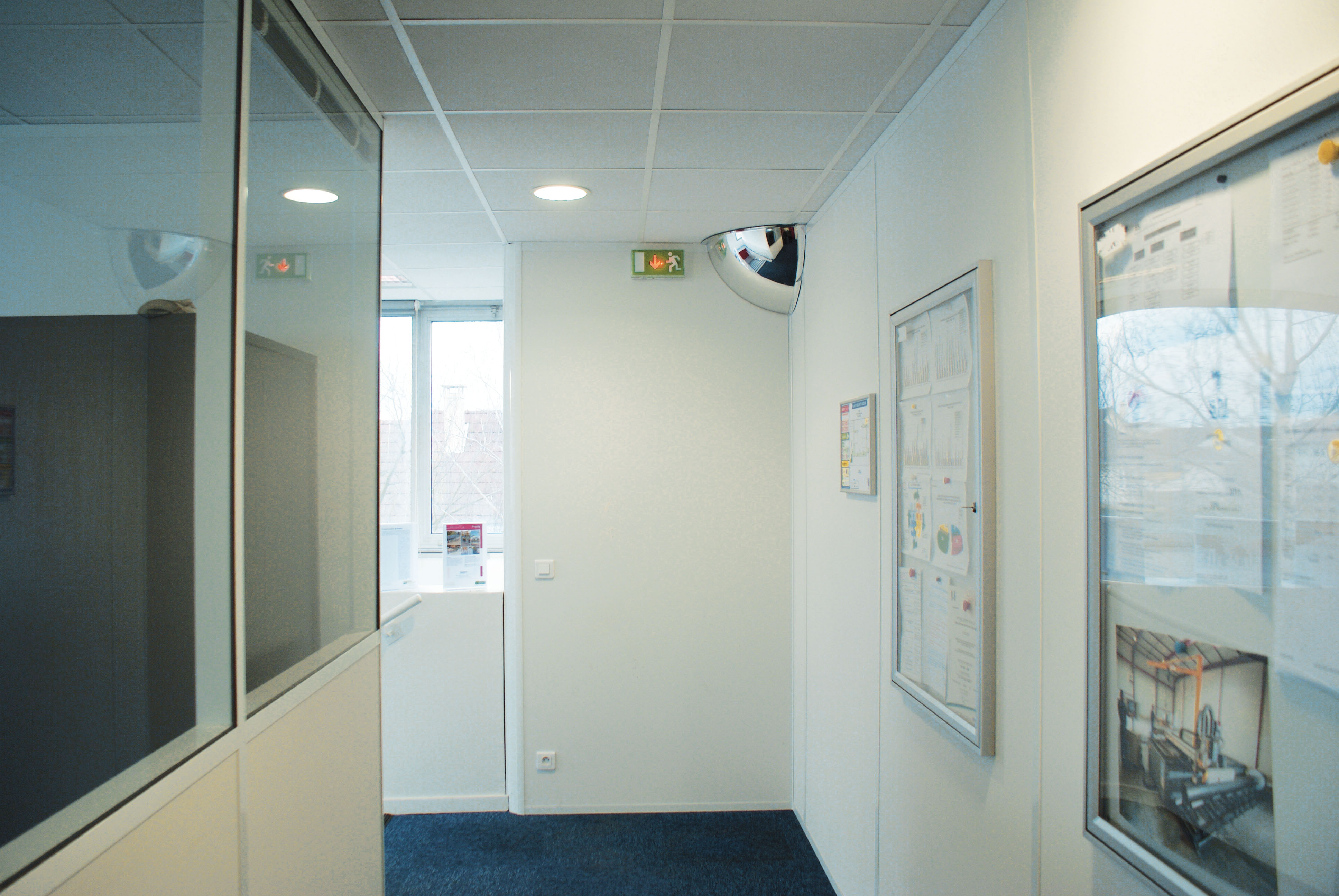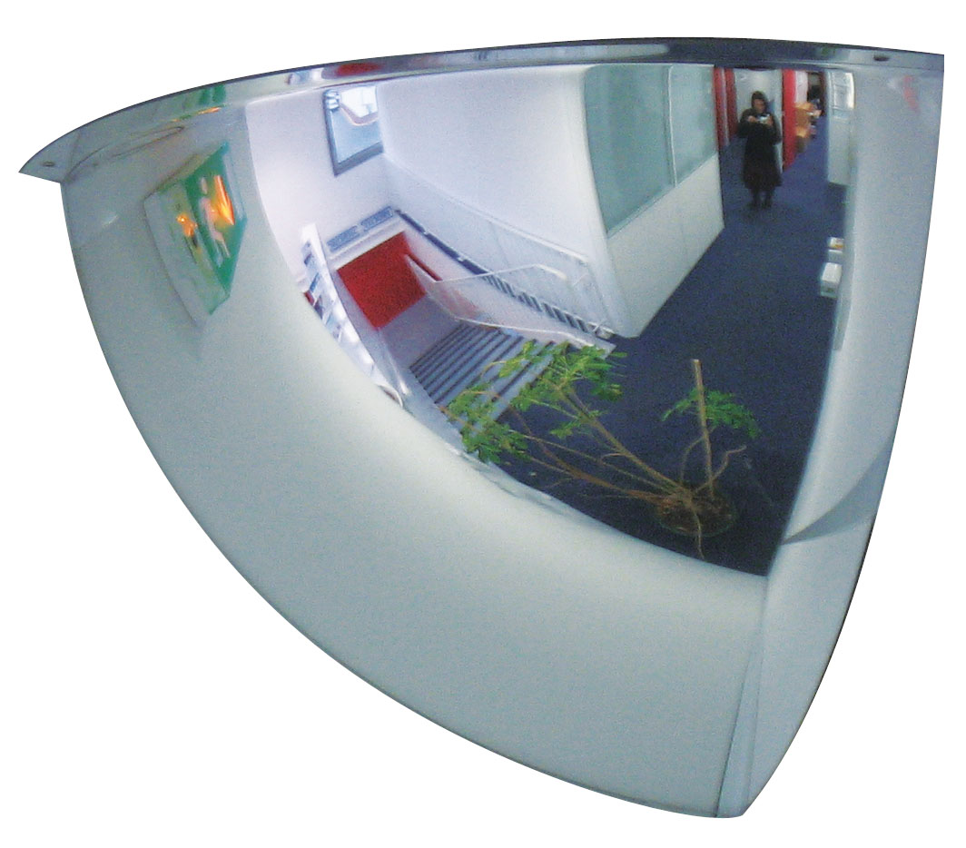 Hemisférická zrcadla pro knihovny! Mějte přehled o dění ve vaší knihovně! Dohlédněte až za roh! Sféra velikost 1/2 (polokoule) je ideální pro dohled v prostorách knihoven. Její vyklenutí umožňuje uskutečňovat kontrolu protírání 4 různých míst (kontrola 4 směrů). Sféra velikosti 1/8 (osmina koule) umožňuje kontrolu z rohů místnosti, kontola 2 směrů. Optikou lze zvolit sféru pro vzdálenost 4, 6 nebo 10 metrů od uživatele.