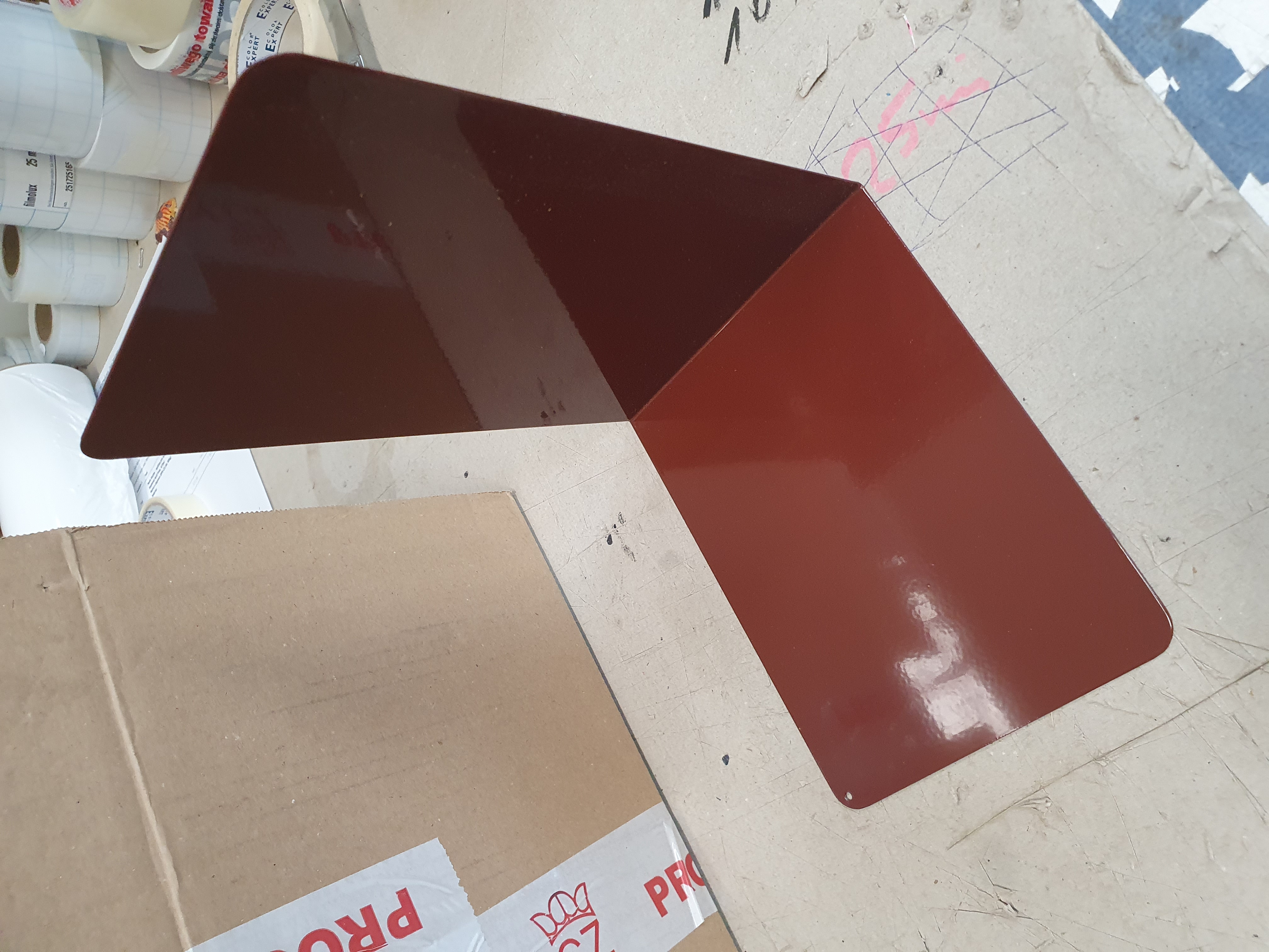 Knižní zarážky "L", vyrobené za 1 mm silného plechu, povrch ošetřen práškovou barvou. Zakladní barva bílá, na přání od 100 ks lze dodat i v jiné barvě.