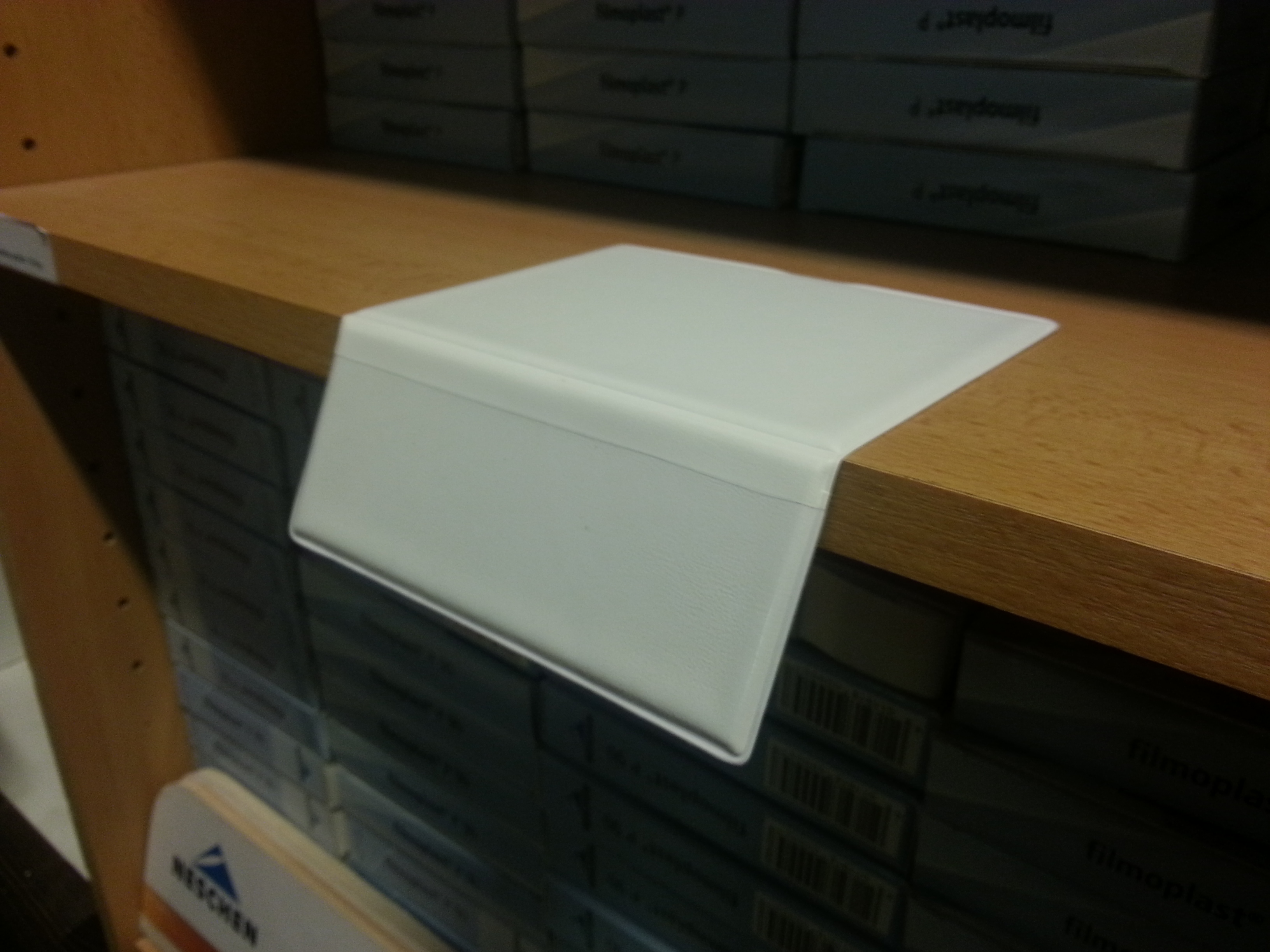 Vyrobené z měkčeného PVC s výztuhou, praporec je po obou stranách opatřen průhlednou fólií pro zasunutí popisky. Před praporcem svár - perforace pro ohnutí. V bílém nebo černém provedení.