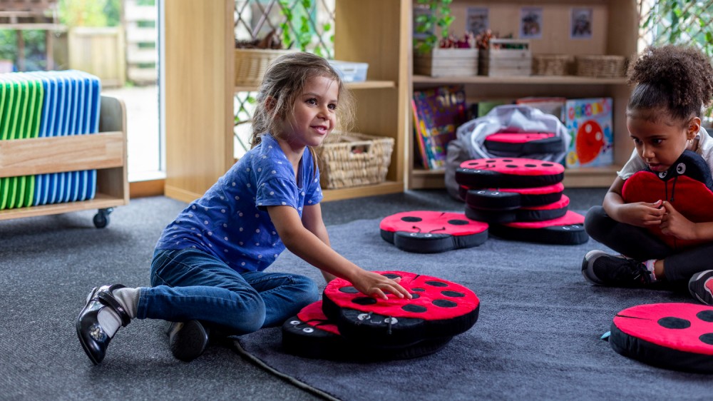 Berušky - sada podsedáků, které slouží zároveň jako matematická pomůcka a uklidňující smyslový polštářek.