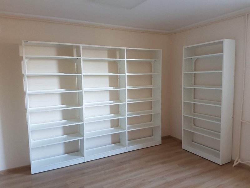 Instalace knihovních regálů STEELA v Obecní veřejné knihovně v Rudzienicích, Polsko.