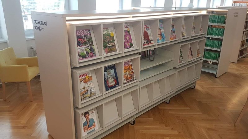 Městská knihovna Veselí nad Moravou - knihovní regály STEELA a Cantilibra