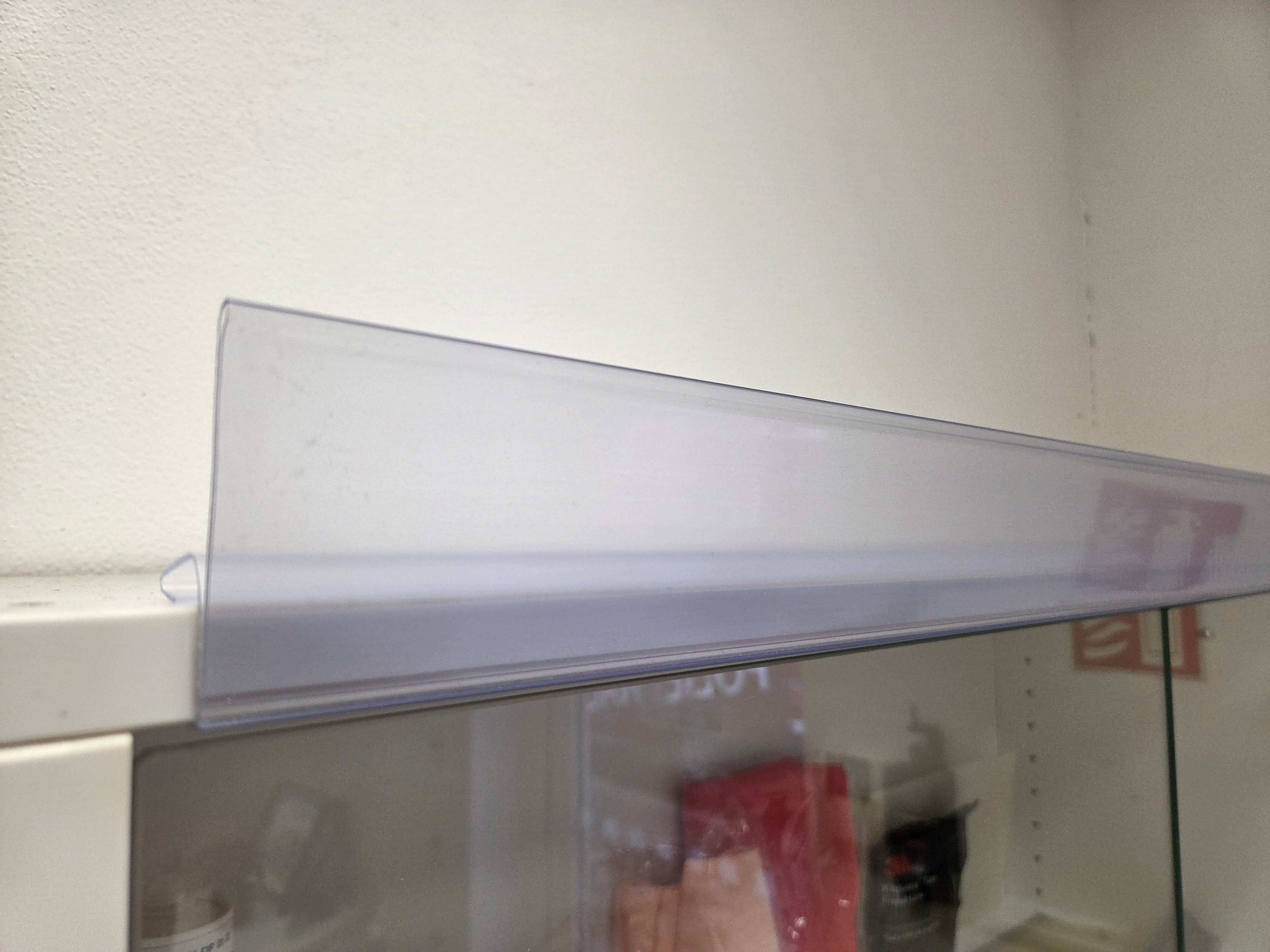 Vhodný pro police o síle 18-25 mm, délka lišty 847 mm, výška plochy pro vložení nápisu 60 mm.