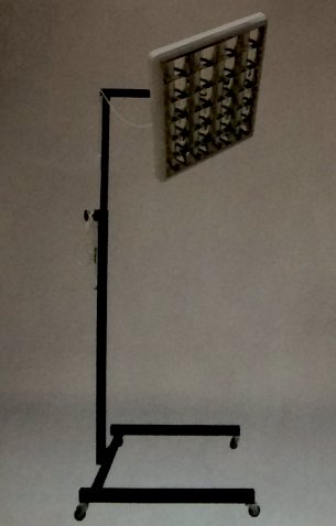 Kovové elektrické světelné lampy s hliníkovým reflektorem usazeným na multifunkčním pohyblivém stojanu s pojezdovými kolečky. Pohyblivost lampy a stojanu se liší dle typu lampy. Lampa pracuje se čtyřmi zářivkami 18/20W typu DAY LIGHT nebo lze dodat i zářivky typu UV-A.