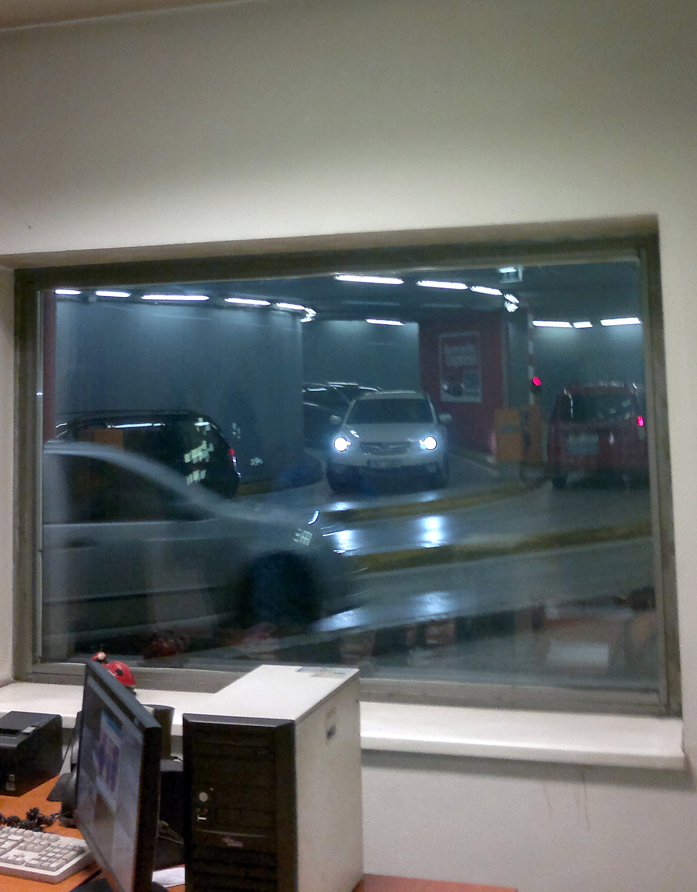 Fólie s efektem jednostranného zrcadla s propustností viditelného světla 10%.